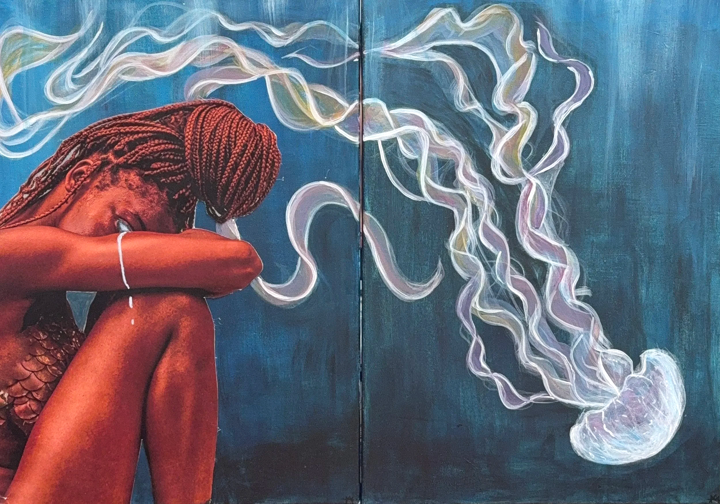 Acrylic, photography, collage on canvas, Diptych 100cm x 80cm