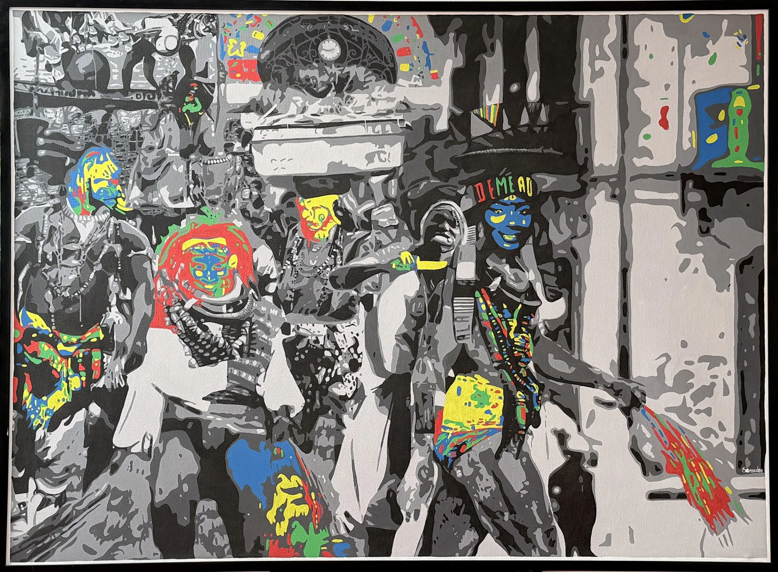 SEMEDOO is a Senegalese painter born in 2002 and based in Dakar. His work is part of an in-depth exploration of identity, collective memory, and the soul of Senegalese society. Inspired by Senegal's cultural richness, SEMEDO draws on scenes from everyday life, ceremonies, spirituality, sports, architecture, and clothing—both traditional and contemporary—which he considers to be true works of art. Through his compositions, he seeks to convey the harmony between tradition and modernity, as well as the pride and dynamism of a constantly evolving society. His artistic practice is based on figurative work characterized by mass treatments, overlapping layers, and color nuances that suggest forms and emotions rather than freezing them in place. This approach allows for a sensitive and expressive reading of his works, leaving room for the viewer's interpretation and feelings. Having participated in several exhibitions, notably at the 2024 Dakar Biennale, SEMEDO affirms a singular and committed vision, where each work becomes a visual testimony, a silent narration of Senegalese identity. His work is both intimate and universal, rooted in his origins while opening up to the world.
